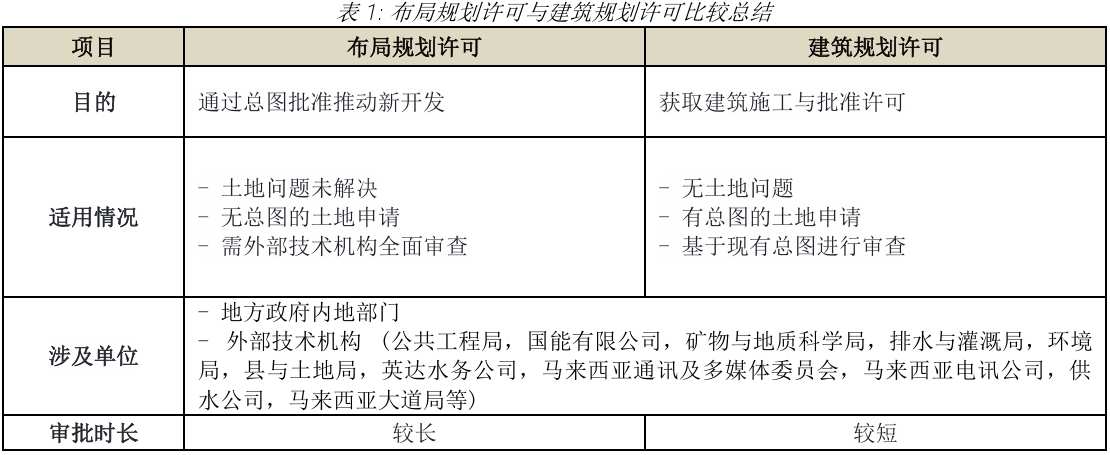 本文仅限于讨论布局规划许可提呈与建筑规划许可提呈之间的比较。一般而言,布局规划许可用于展示拟议土地范围内的土地用途,并用于编制总图、土地细分、土地分割、土地合并及/或土地转换等涉及拟议土地规范与用途变更的事项。