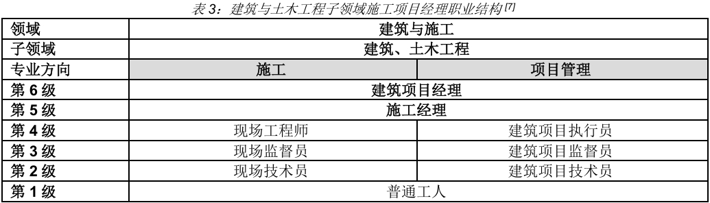 建筑与施工行业中施工项目经理的职业结构已在表3中进行了说明。