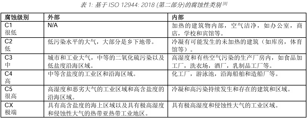 将涂层类型与基材及其适用的工作环境相匹配是至关重要的,正确的涂层可以帮助减缓腐化,延长使用寿命并简化未来的维护。国际标准化组织已对某些环境的腐蚀性进行了分类和标准化。根据ISO 12944:2018(第二部分),已将腐蚀性分为6种类型便已C1到CX命名,此命名时按照腐蚀性增进的顺序,基于未经过处理的锌或者碳钢在大气状态下的腐蚀时间。一旦确认了环境,就可以针对该环境选择正确的防腐蚀涂层规格来保护钢结构免受腐蚀。这有效避免过度的支出在不必要的保护或做出错误的选择。