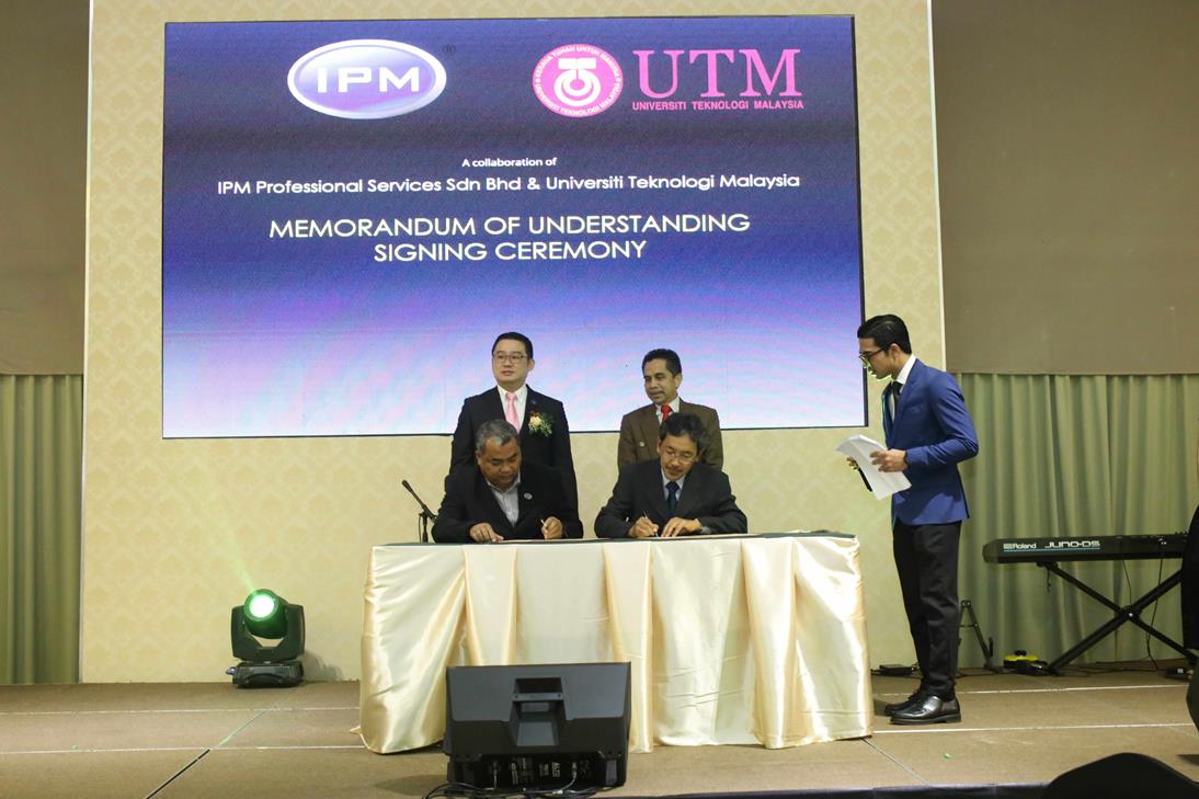 IPM也在当晚与马来西亚科技大学(UTM)签署了合作谅解备忘录,以扩大各自的业务发展。除此之外, IPM集团也此晚宴中发表了两个创新的产品,既是土地开发计算器与设计格子铺。