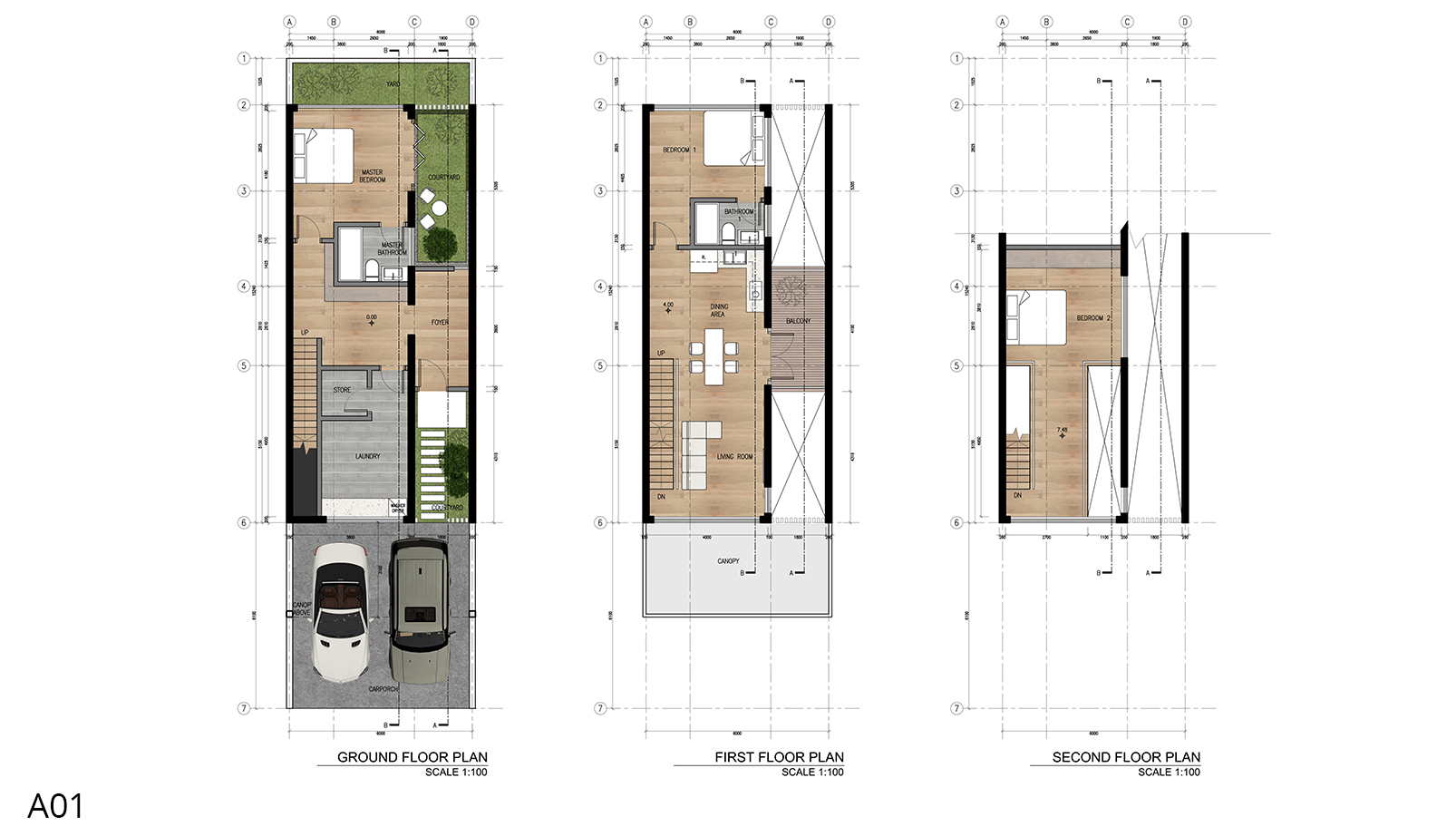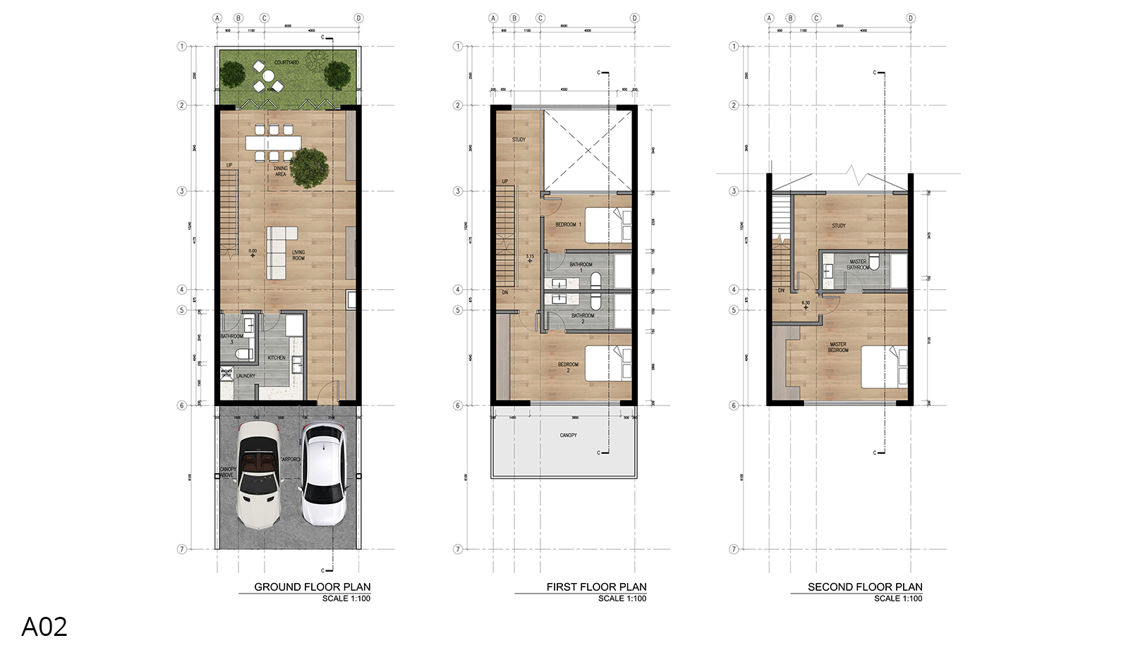 This project introduces a different type of terrace house experience to users. The idea of courtyard space inside the enclosed living space instead of placed outside of the house. Both of the types position its courtyard differently, creating a whole new welcoming ambiance.